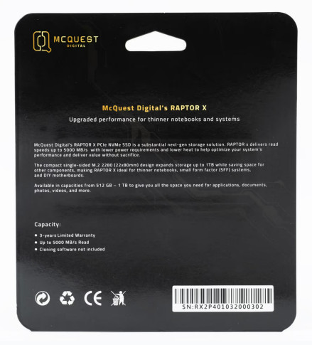 MCQUEST DIGITAL RAPTOR X 512GB NVME Gen4 upto 5.000mbps